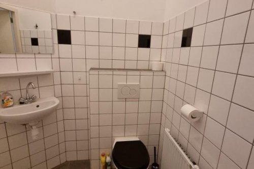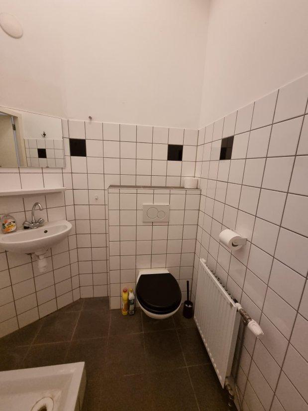 De badkamer is netjes afgewerkt en uitgerust met een douche, wastafel met spiegel en toilet. De woning maakt een frisse en goed onderhouden indruk.