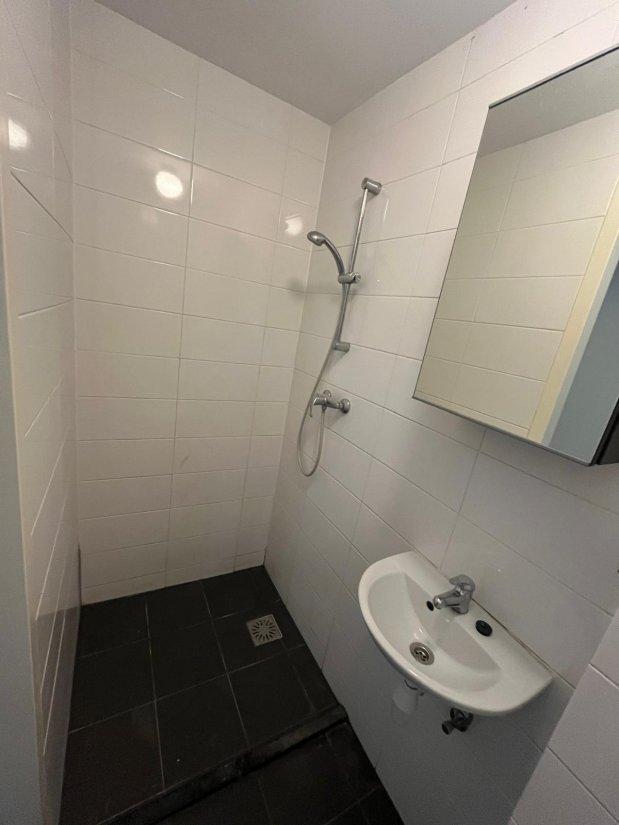Het appartement beschikt over een lichte woonruimte met open keuken en een aparte slaapkamer. De keuken is voorzien van diverse inbouwapparatuur, waaronder een koelkast, kookplaat, afzuigkap en voldoende kastruimte. De badkamer is netjes afgewerkt en beschikt over een douche, wastafel met spiegel en een toilet.